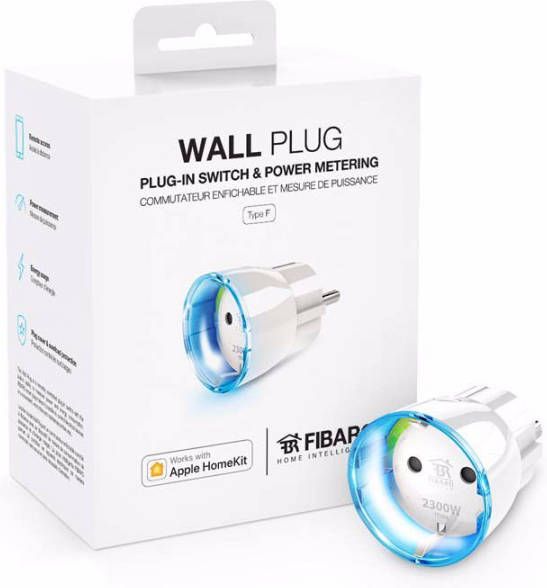 De FIBARO Wall Plug (HomeKit) is een compacte slimme stekker met energieverbruik meting die werkt met Apple HomeKit. Hiermee schakel je ieder gewenst apparaat (met een maximale belasting van 2300W) in- en uit op afstand. De FIBARO Wall Plug heeft een LEDindicator waaraan het energie verbruik gemakkelijk is af te lezen, de kleur past zich aan op het huidig verbruik.